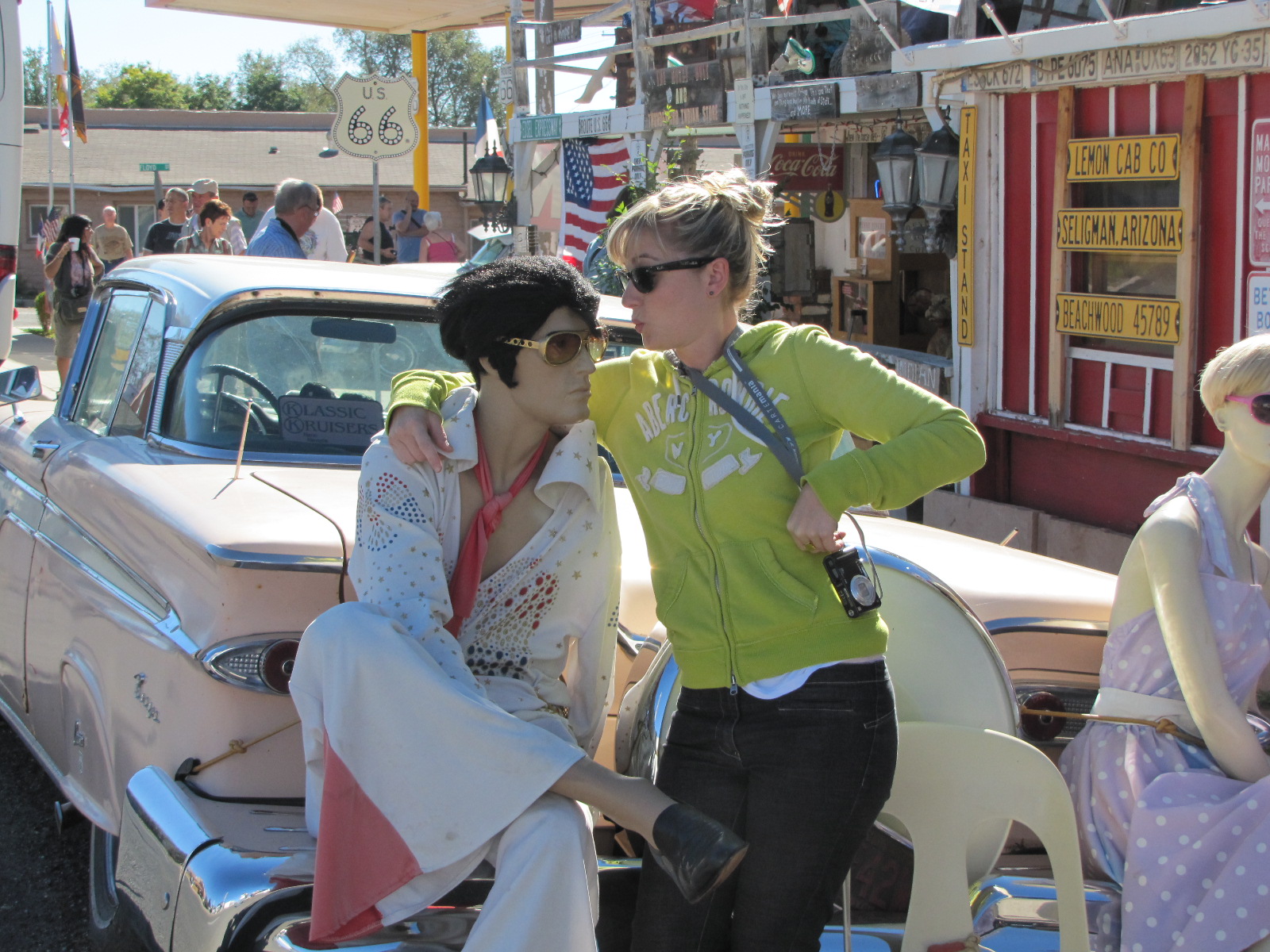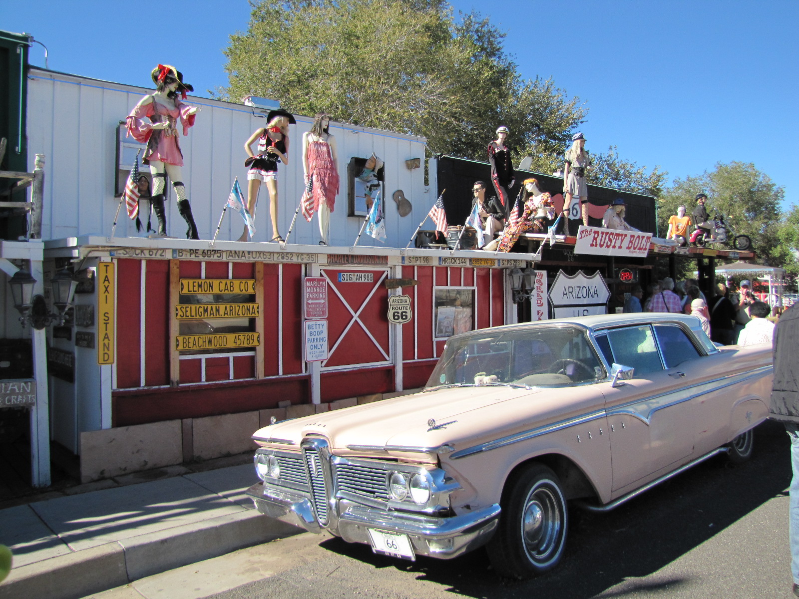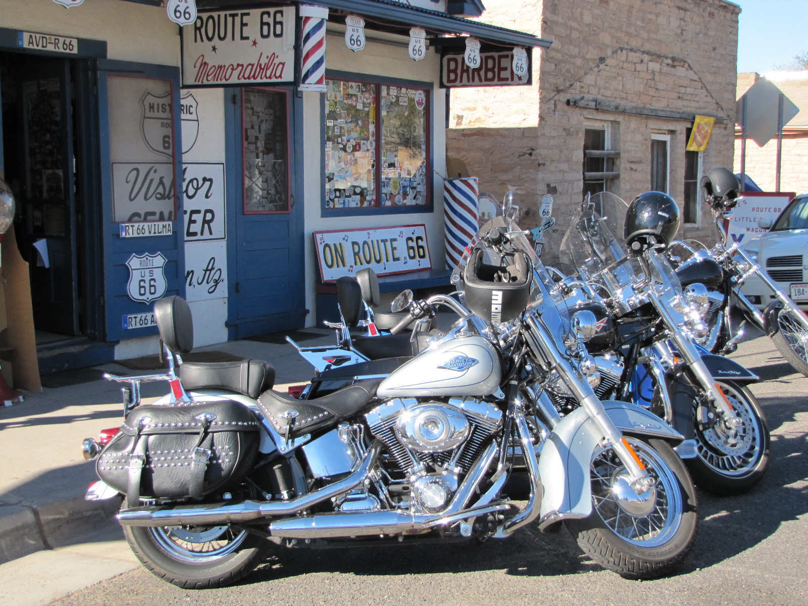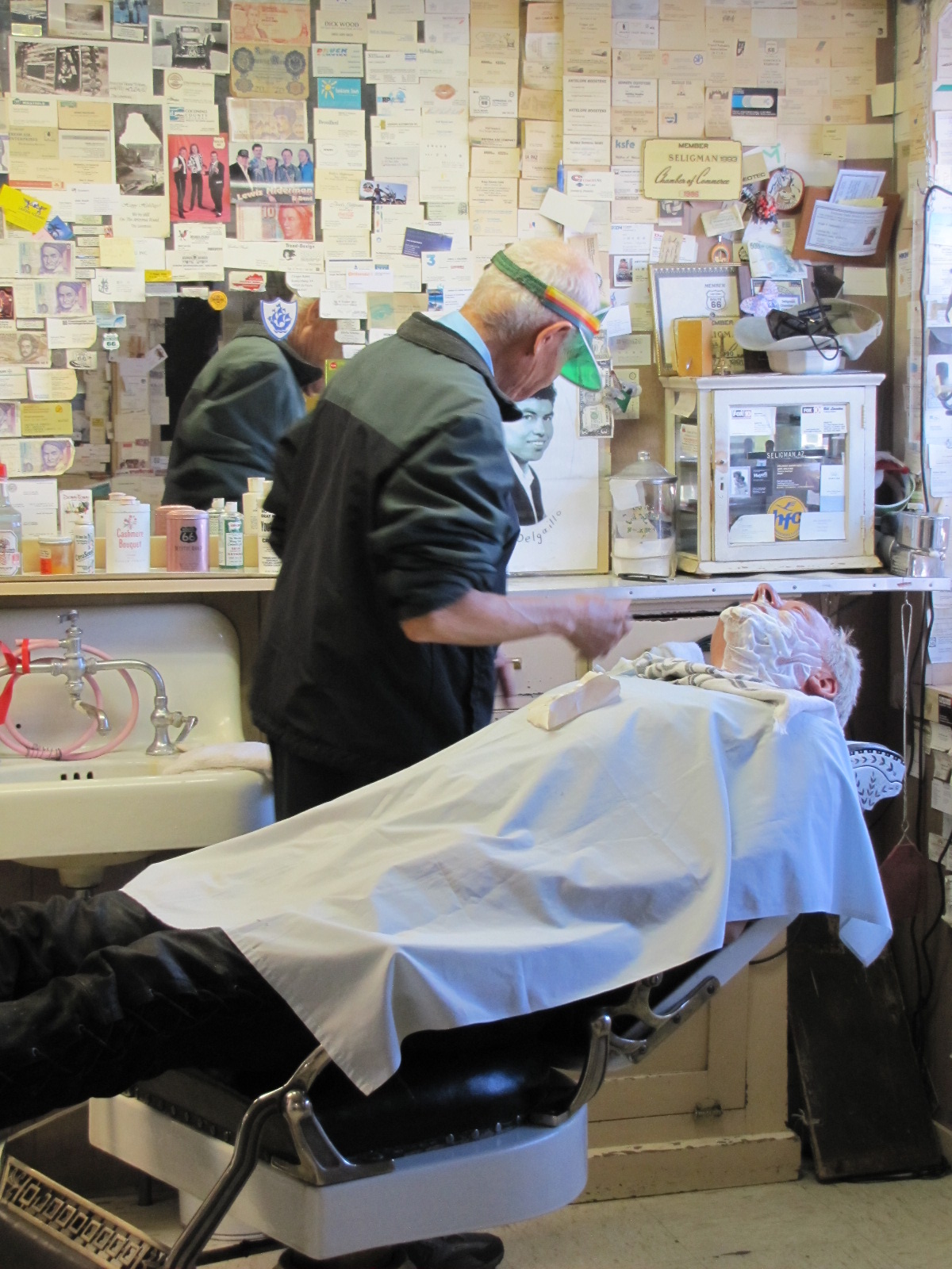 Nous sommes donc partis de notre hôtel à Williams en Arizona via la route 66 en direction du grand canyon, avec un arrêt obligatoire à Seligman, petite ville située sur la « mother road » vaguement gardé dans « le jus » pour les cars de touristes qui s’arrêtent afin de voir le barbier en action (Angel Delgadillo installé à Seligman avec son frère Juan dans les années 50)
