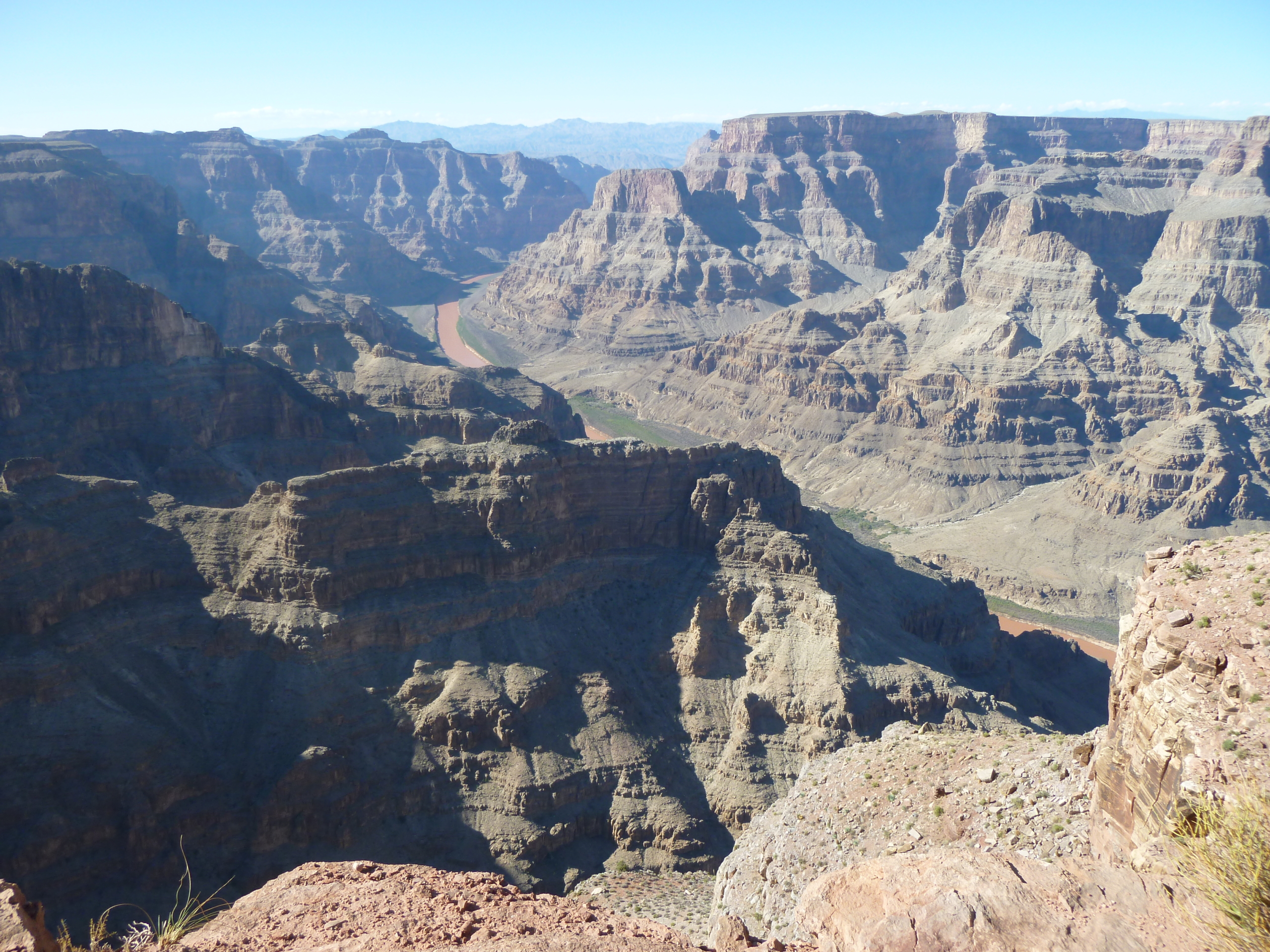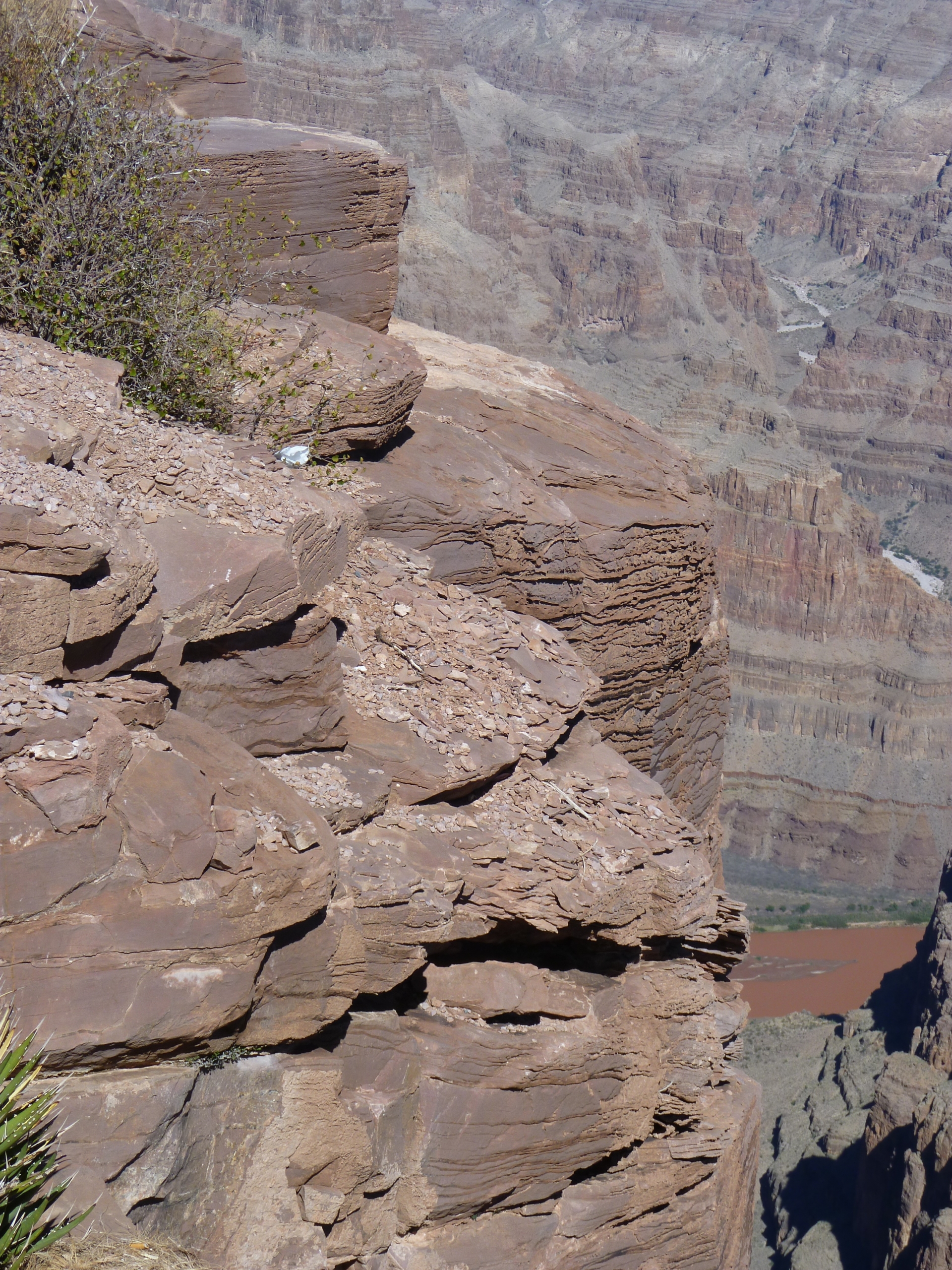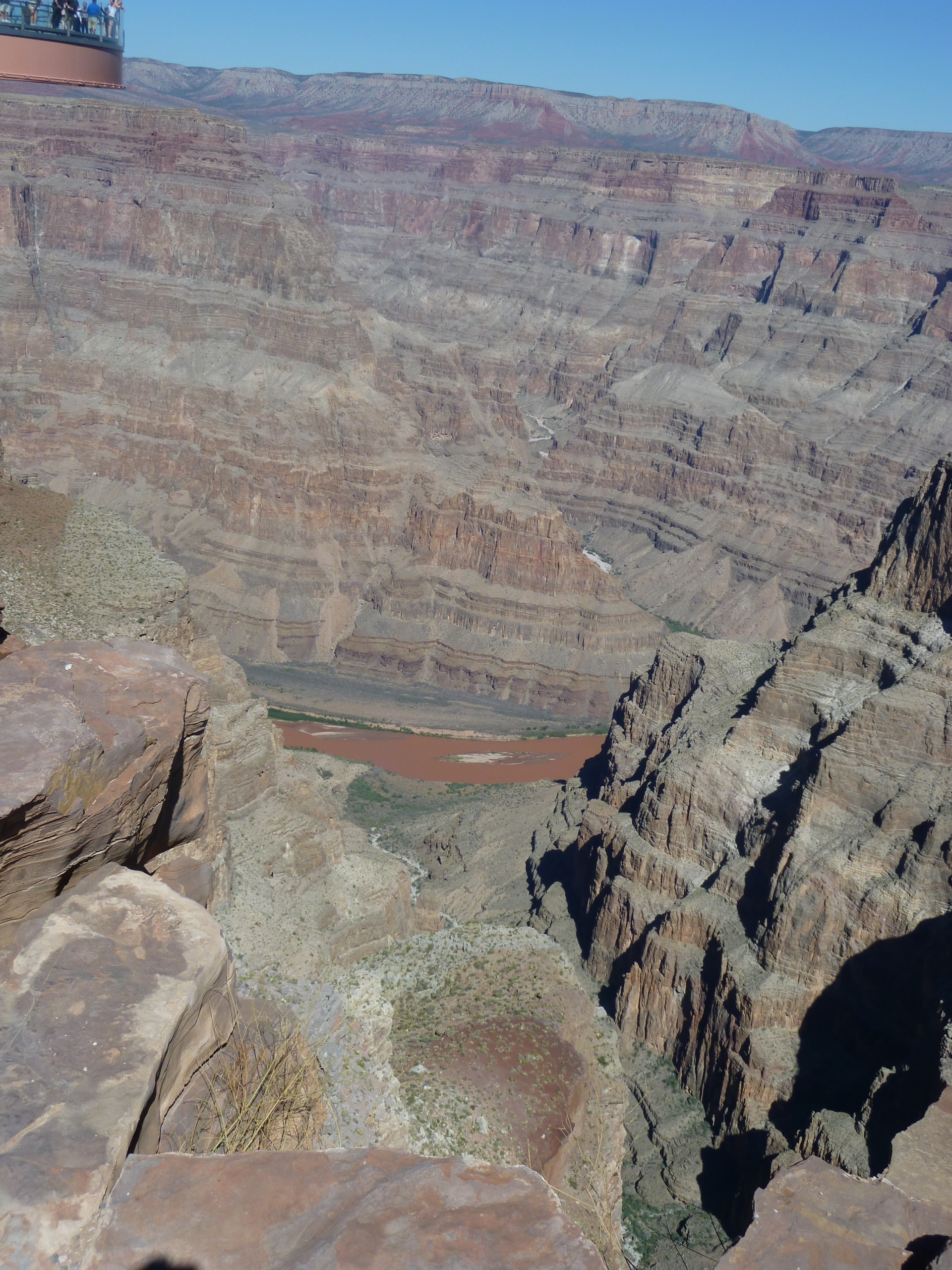 Le détour vaut vraiment le coup d’œil par contre, arrivé sur place c’est un point de vue de 1200 mètres de haut qui s’offre à nous avec tout au fond du canyon, le Colorado qui coule tout rouge (pour cause de sable de la même couleur).