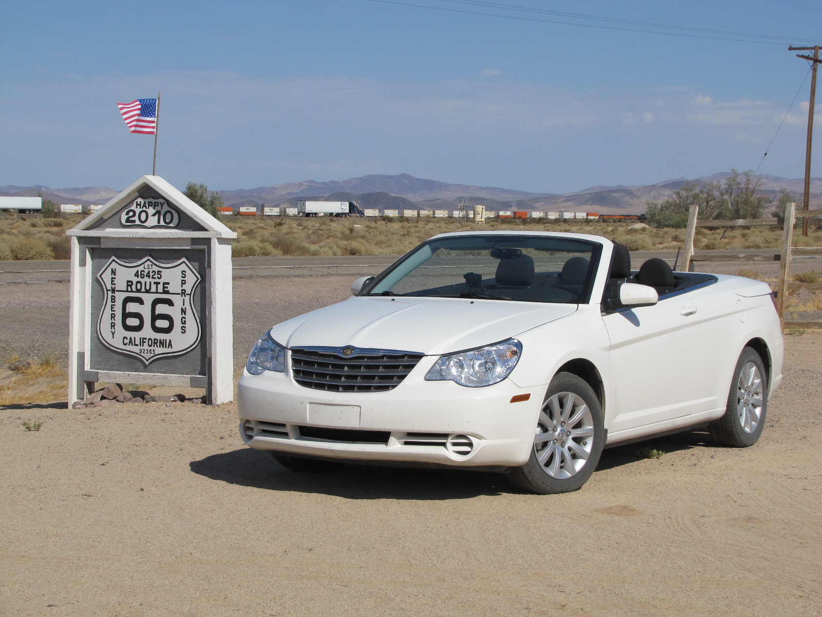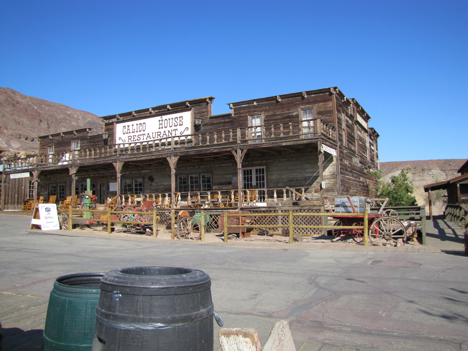 Pause photo couché sur la route pour avoir le logo route 66, puis anais prend le volant de la Chrysler (en ligne droite dans le désert sans personne autour !!!) direction Calico la ville fantome, ancienne ville minière qui à eu son heure de gloire fin 1800 pour mourrir début 1900 après que les mineurs se soient apercus que le filon d’or annoncé était un filon « d’or des fous » d’ailleurs Anais à été lachée devant le ruisseau avec son assiette et hop un coup de tamis plus tard elle repartait plus riche d’un sachet d’or. Pas de chance il faut savoir qu’aux USA, tout se qui touche au culturel ferme au maximum à 17h … et hors saison c’est encore plus tôt … donc nous n’aurons pas la chance de faire un tour de petit train (8 minutes maxi …) ni de visiter la mine d’or (avec les squelettes en plastique des deux mineurs qui l’ont ouvert …)