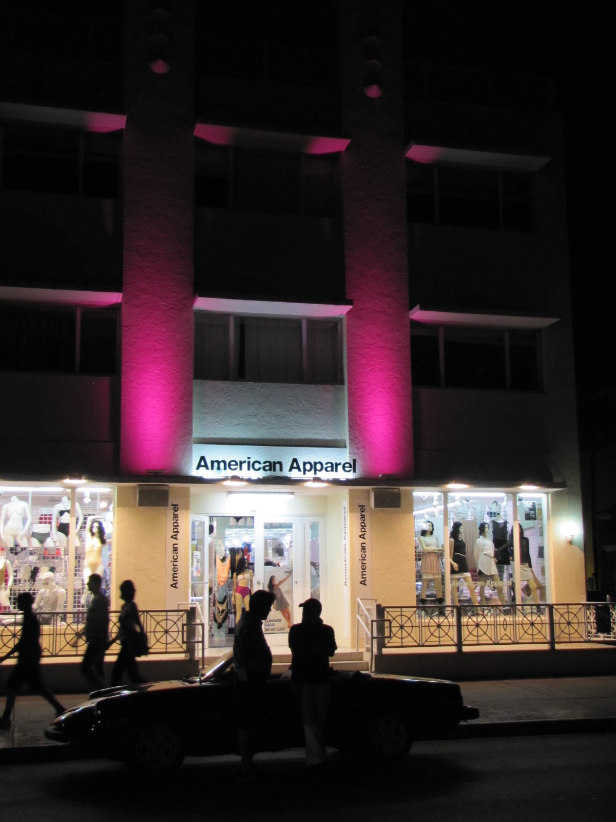 De nuit l’effet enseigne fluo est saisissant, même les enseignes type Mac Do, ou les enseignes de vêtements comme American Apparel joue le jeu avec des néons fluo très colorés.