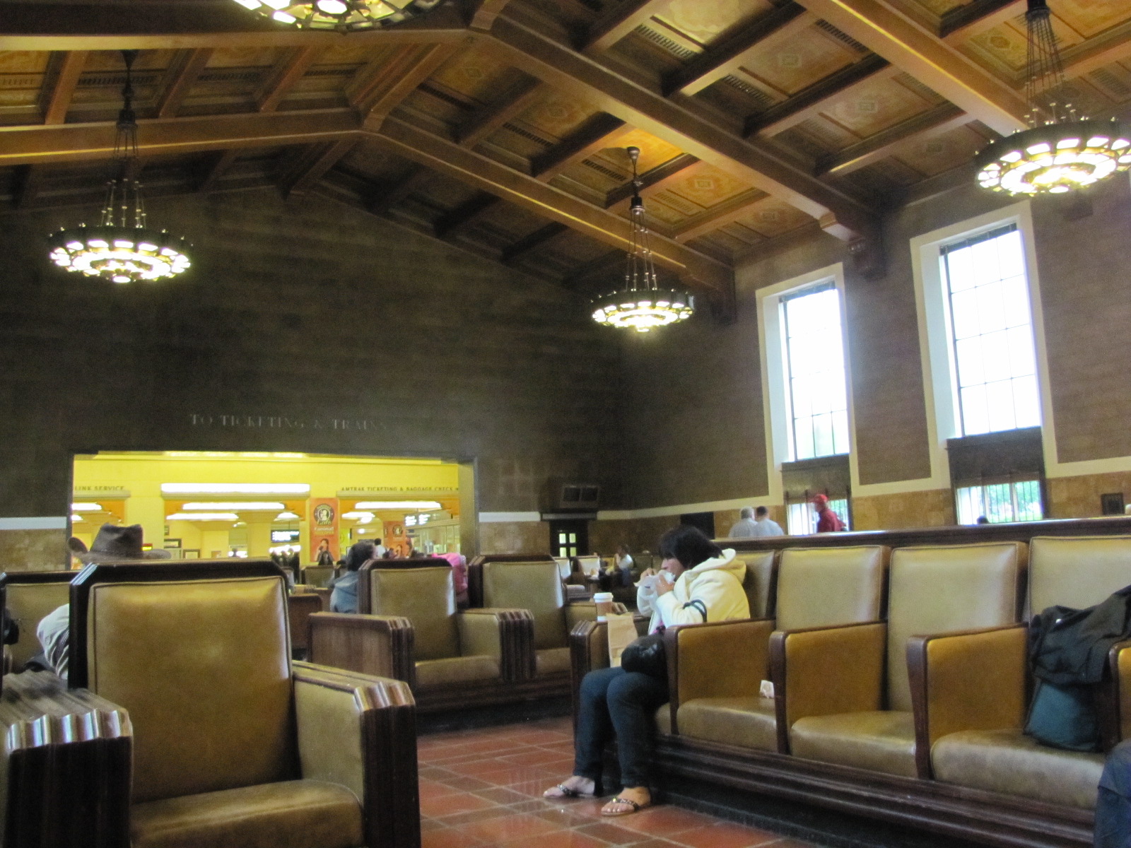 On enchaine avec Union Station et la rue Olvera dans Dowtown. La gare de Los Angeles tout simplement magnifique avec ses fauteuils en cuir pour attendre le train, et la petite rue piétonne du quartier Mexicain qui longe la gare, on à faillit acheter des masques de lucha libre sur place mais finalement on s’est dit qu’à la douane ca les ferait pas rire … dommage Anais avait trouvé un masque Hello Kitty …